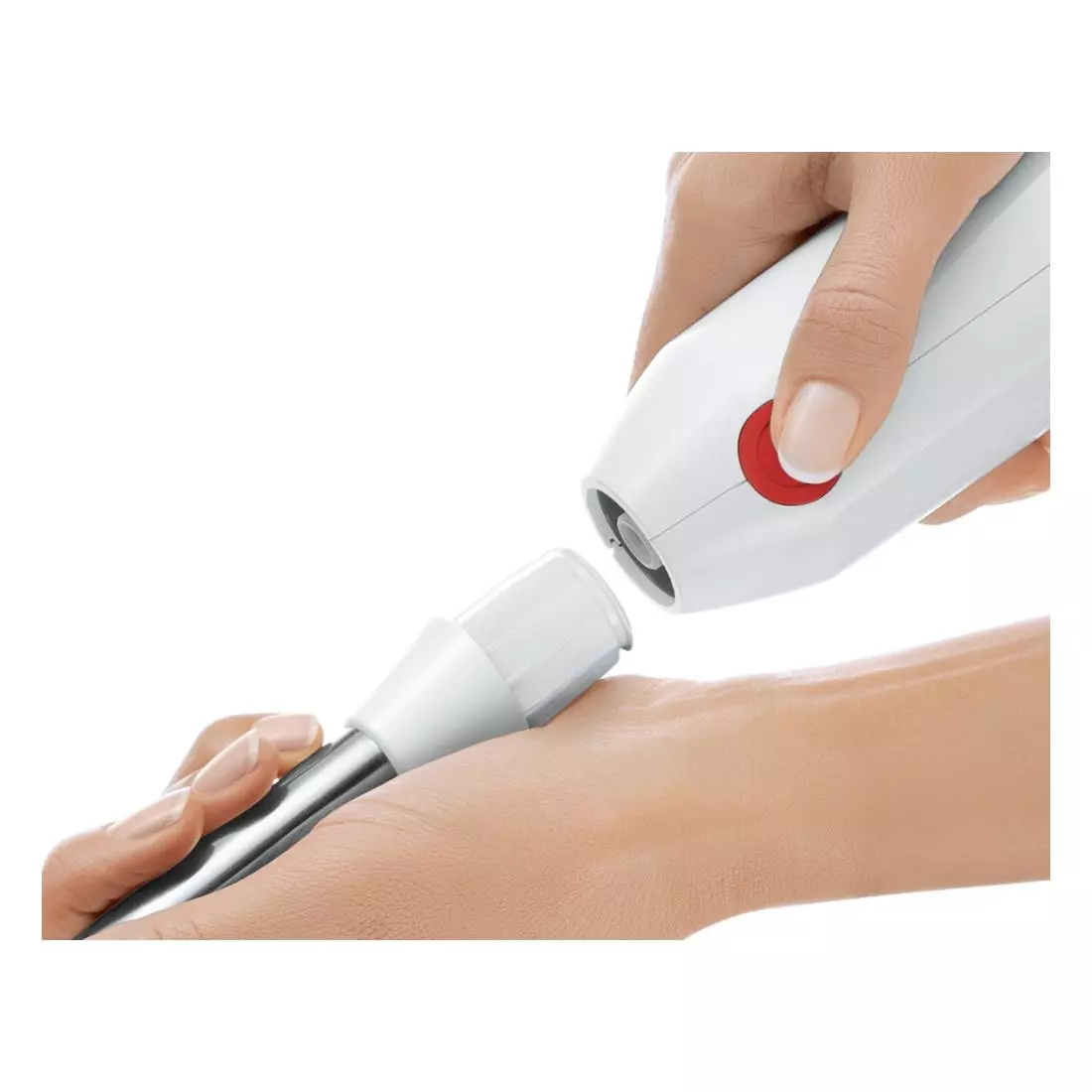 Ergonomisch geformt, große Tasten, Soft-Touch-Gehäuse, zusätzliche Turbotaste, Edelstahl-Mixfuß, Eject-Mechanismus, Mixfuß und Messbecher (mit Skalkerung) sind spülmaschinengeeignet, Farbe: Rot/weiß