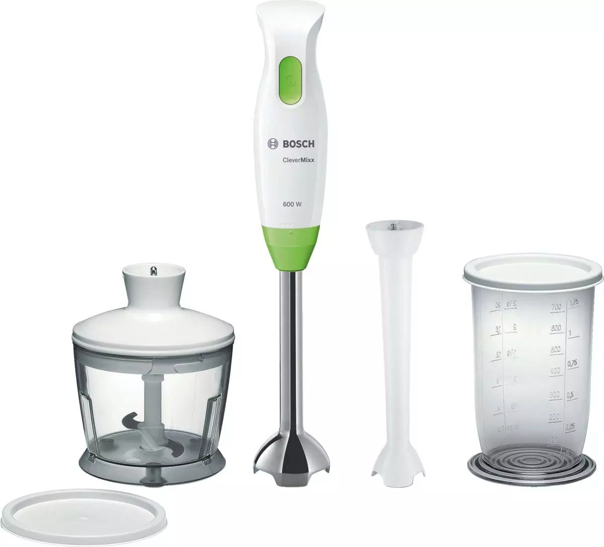 QuattroBlade, 4-Klingen-Messer, Bayonettverriegelung, inkl. Zubehör: 1 Mixstab Edelstahl, 1 Schlagbesen, 1 Universalzerkleinerer, 1 Deckel, 1 Mix-/Messbecher, Farbe: Weiß/deep red