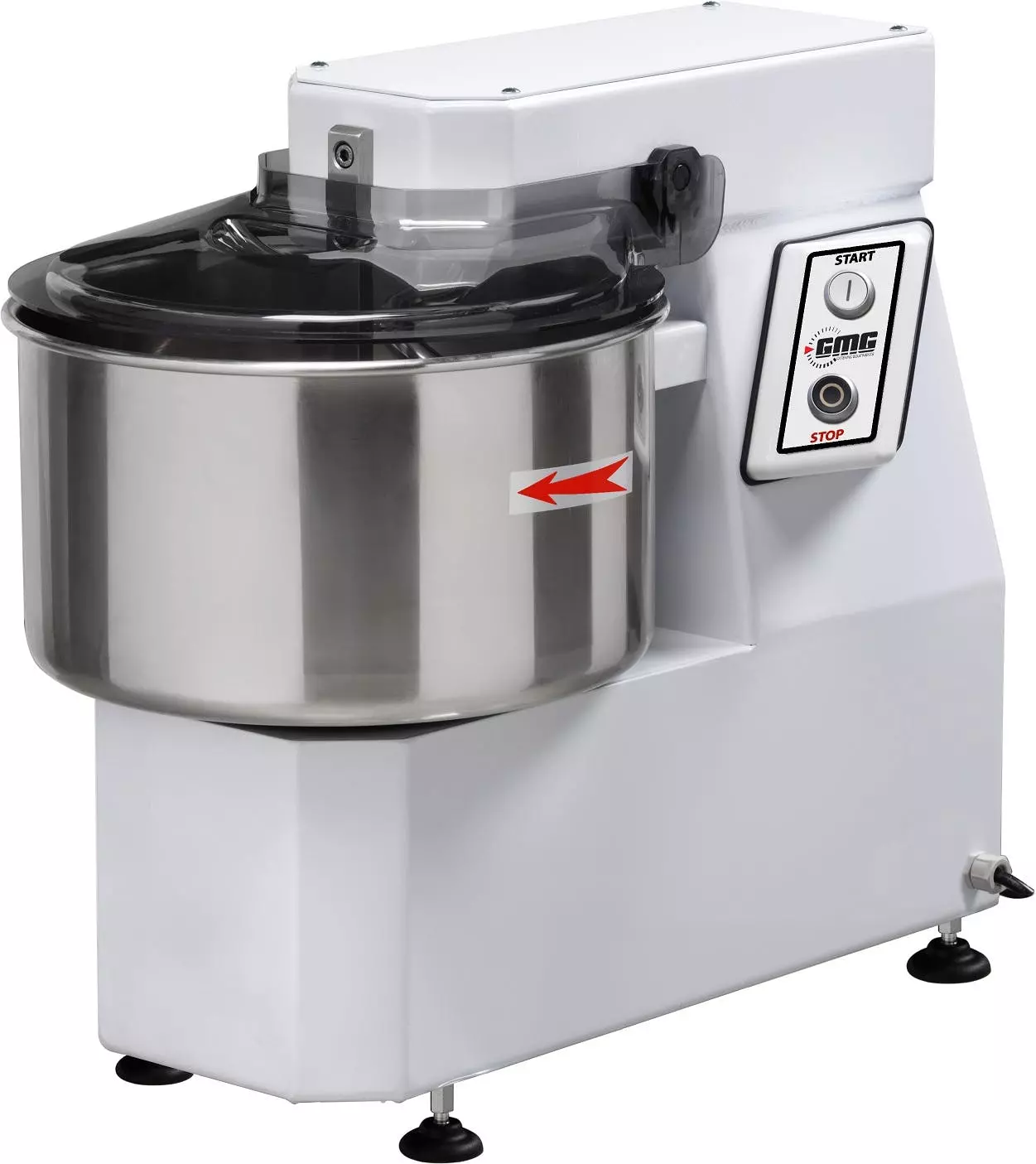 GMG – Teigknetmaschine 32 Lt. / 25 Kg 230V – fester Kopf und Wanne – inkl. Spirale, Abdeckung, Teigteiler und Wanne aus Edelstahl