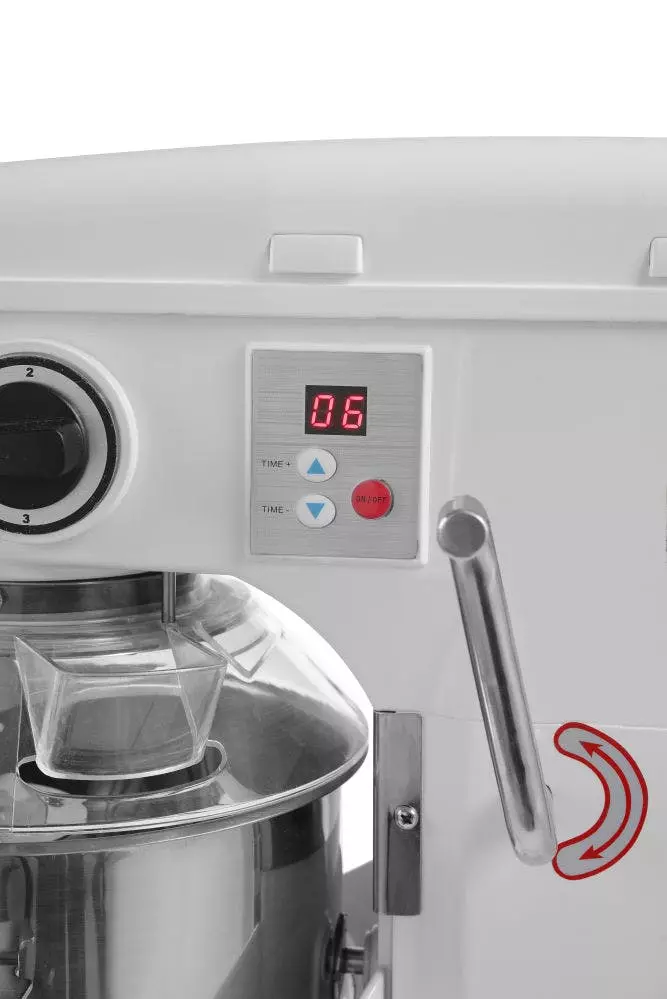 Hochwertiges Gussstahlgehäuse, Spritzguss Deckel und Schüsselabdeckung aus Chromdraht. Hochleistungsschneckenantrieb und Zahnräder. Mehrere eingebaute Sicherheitsabschalter sorgen für höchste Sicherheit und bestmöglichen Überlastungsschutz. Inklusive Schüssel, Schläger, Schneebesen und Teighaken aus Edelstahl. Einfach und übersichtliche Bedienung. Maximale Mehlverarbeitungsmenge: 5 kg. Mit praktischem Griff zum Anheben der Schüssel. Sicherheitsabschalter am Hub und an der Schüsselfixierung. 3 einstellbare Geschwindigkeiten: 197/317/462 U/Min.