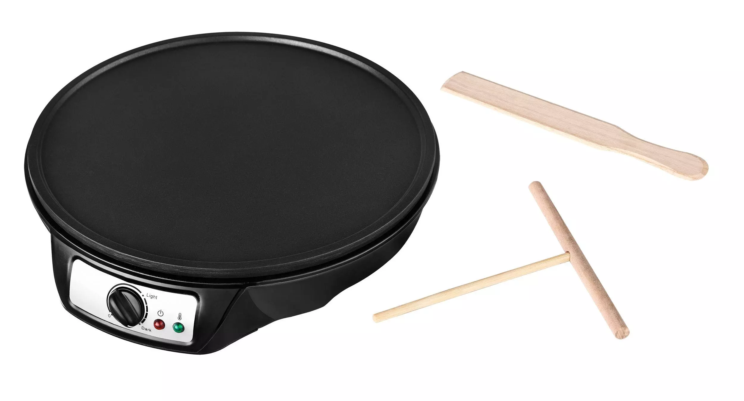 Michelino Crêpes Maker Fiesta Ø30cm, antihaftbeschichtete Platte, inkl. Teigverteiler & Crêpes-Wender, 1200 Watt, Crepesmaker schwarz