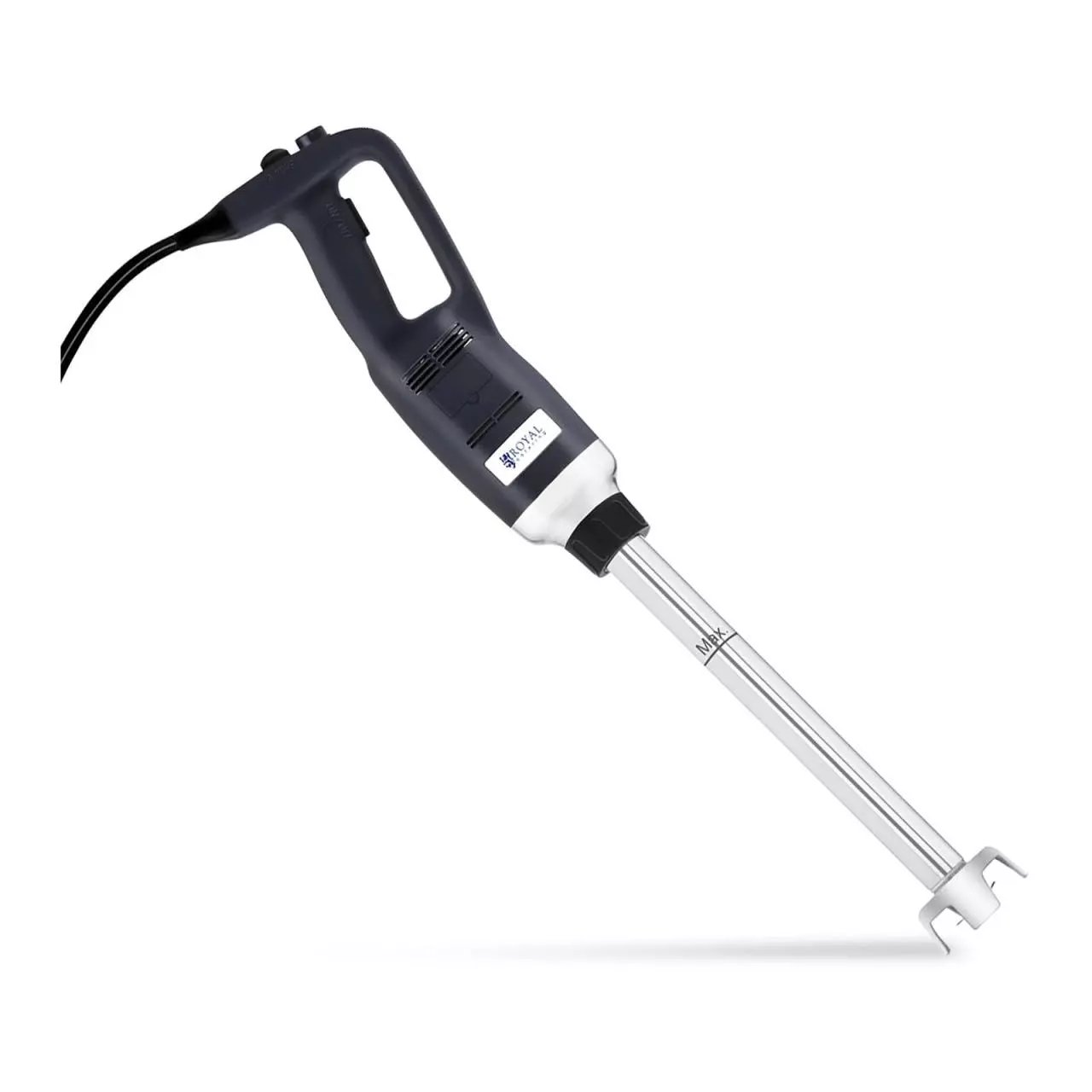 Stabmixer – 500 W – 400 mm – einstellbare Geschwindigkeit – 4.000 bis 16.000 U/min Einen frischen Smoothie zubereiten, eine Suppe pürieren oder schnell noch ein köstliches Dessert aus Erdbeeren zaubern, den Stabmixer RCSM-500-400P von Royal Catering können Sie vielseitig einsetzen, um das Catering bei der nächsten Veranstaltung oder das Büffet in Ihrem Hotel mit abwechslungsreichen Speisen zu erweitern.