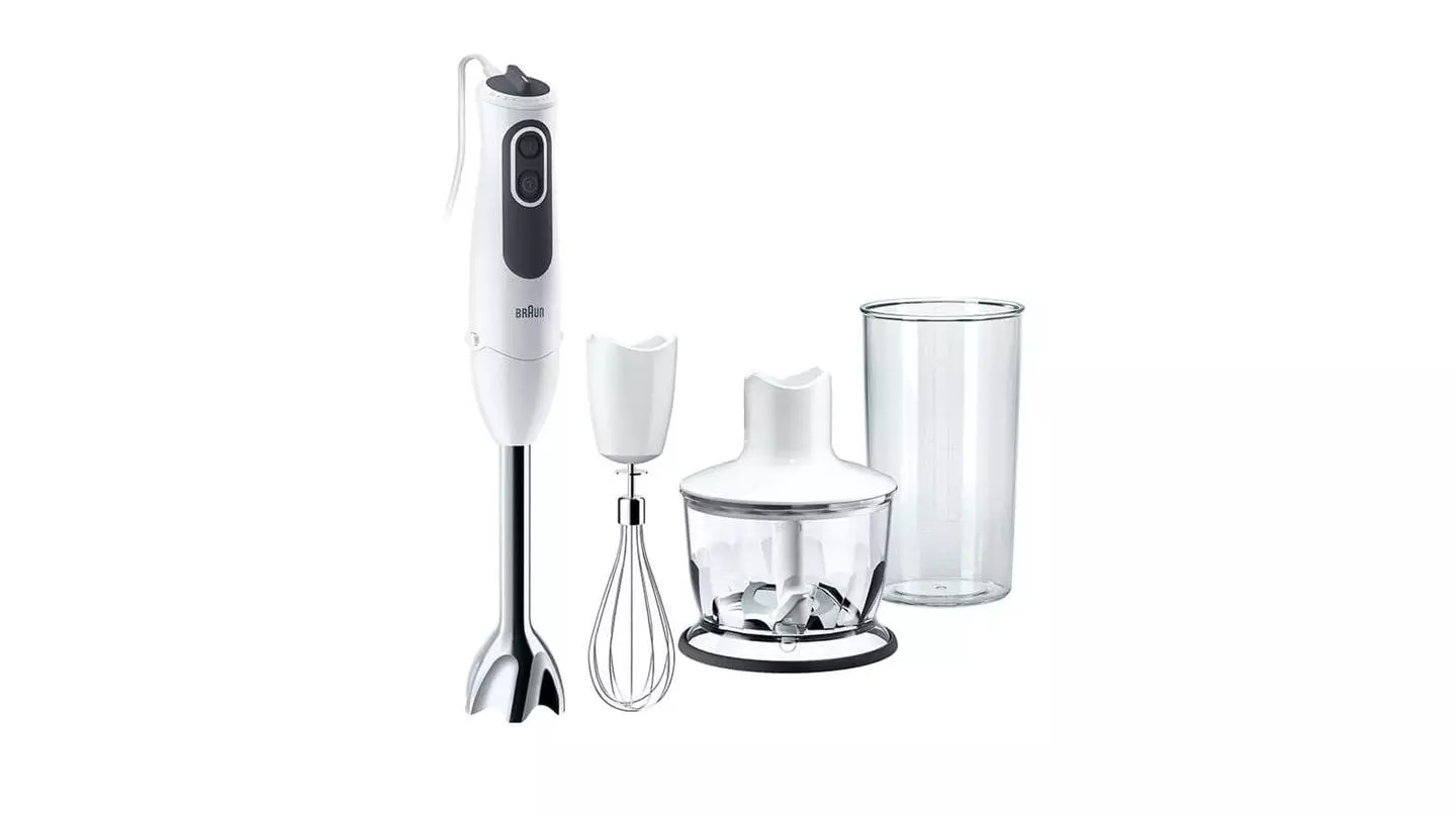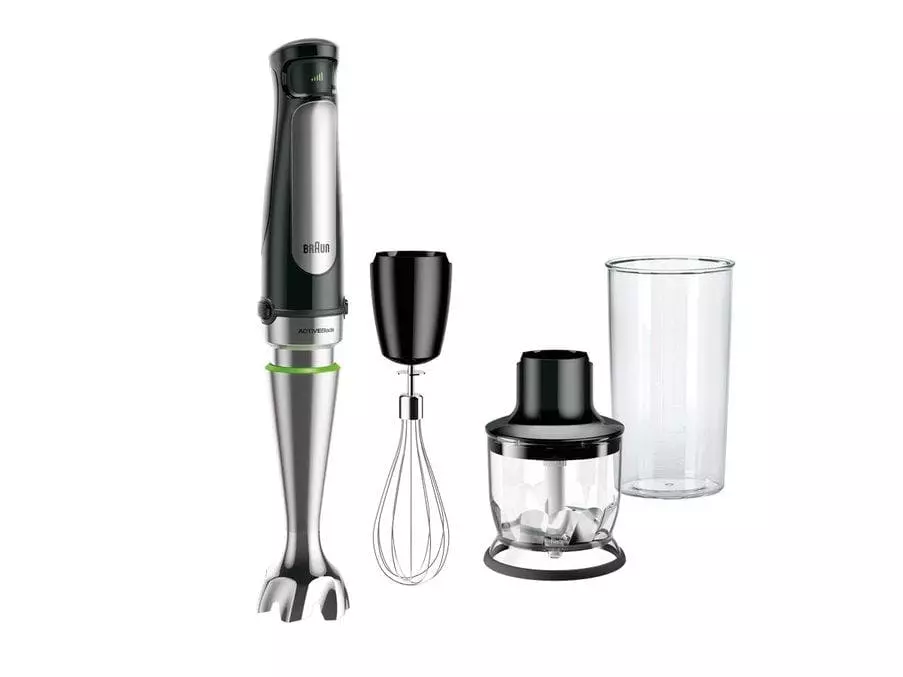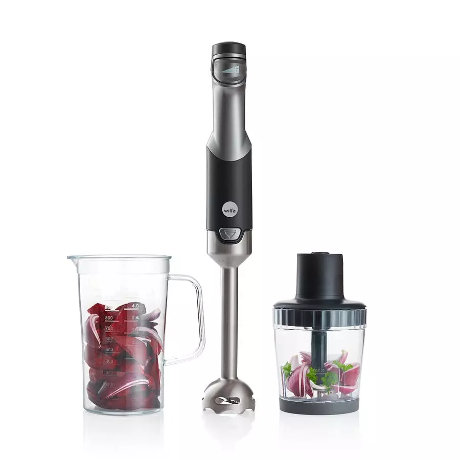 Inklusive Zubehör: Becher mit 500 ml Fassungsvermögen, kalibriert in ml und oz, mit Deckel, Doppelklinge-Zerkleiner mit 600 ml Fassungsvermögen und Schneebesen. BPA-frei.