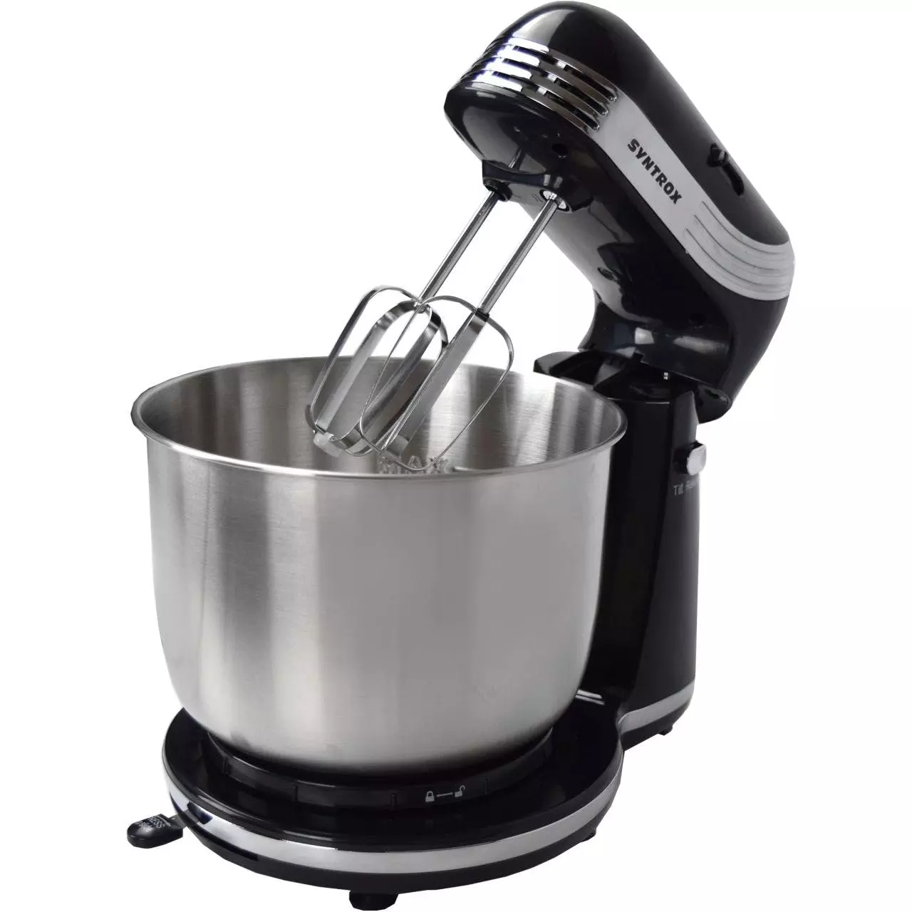 Küchenmaschine Food Processor KM-250W Delight in Schwarz – im zeitlosen DesignSie könnten eine neue Küchenmaschine gebrauchen, die auch einige Besonderheiten und Extras mit sich bringt? Dann wäre die hier angebotene Küchenmaschine Foor Processor KM-250W Delight in Schwarz möglicherweise genau die Richtige für Sie. Die Knetmaschine aus dem Hause Syntrox Germany ist im zeitlos schönen Design gestaltet und bietet in Plus an Luxus. Dank des zeitlosen Designs integriert sich diese hochwertige und moderne Küchenmaschine in Schwarz optimal in jeden Küchenbereich. Versehen ist die praktische Küchen- und Knetmaschine mit einer Rührschüssel aus Edelstahl. Diese Edelstahlschüssel hat ein Fassungsvermögen von 3 Litern, was doch sehr sehenswert ist. Mit der Küchenmaschine KM-250W Delight in Schwarz können Sie die verschiedensten Teige auf Knopfdruck sehr komfortabel und schnell zubereiten. Mit solch einer exklusiven und modernen Maschine können Sie nichts falschmachen.Eine Küchenmaschine mit vielen Funktionen – die Technik von Syntrox GermanySie erhalten mit dieser Küchenmaschine und Knetmaschine eine tolle Technik, die Ihnen viele Funktionen mitbringt. Mit der leistungsstarken und im zeitlosen Design gehaltenen Syntrox Küchenmaschine gibt es für Sie ein Gerät, das multifunktionell ist. Mit ihr können Sie viele Dinge machen. Möglich sind: • Kneten • Mischen • Rühren • SchlagenWenn Sie die praktische Küchenmaschine einmal in Funktion genommen haben, werden Sie sie bestimmt lieben und gerne wieder benutzen. Es ist auch gar nicht kompliziert, die Küchenmaschine in Funktion zu nehmen. Geben Sie einfach in die Rührschüssel die gewünschten Zutaten. Die Schüssel setzen Sie in die Basiseinheit ein und drehen sie im Uhrzeigersinn auf das geschlossene Schlosssymbol, welche auf dem Basisgerät von Syntrox Deutschland zu sehen ist. Die Drehscheibe müssen Sie dabei festhalten. Je nachdem, welche Teige Sie verarbeiten möchten, müssen Sie die entsprechenden Rühreinheiten verwenden. • Rührstäbe für Mischen, Schlagen und Rühren von Zutaten und Flüssigkeiten • Knethaken für Rühren und Kneten von Kuchenteigen und BrotteigenEs besteht auch die Möglichkeit, die Schüssel mit den Händen während des Rührens zu drehen. So wird die Mischung noch gleichmäßiger. Am Basisgerät gibt es außerdem einen Hebel, mit dem Sie die Schüssel hin und her bewegen können. Diese gute und leistungsstarke Küchenmaschine ist mit einer mehrstufigen Geschwindigkeitsregulierung versehen. Durch diese Regulierung kann sich die Küchenmaschine ganz bequem der Konsistenz des zu verrührenden Lebensmittels anpassen. Insgesamt verfügt diese Küchenmaschine über 6 Geschwindigkeitsstufen.Eigenschaften: • Geschwindigkeiten: 6 • Fassungsvermögen Edelstahlschüssel: 3 Liter • Gewicht: ca. 1,8 kg • Kabellänge: 80 cm • Power: 250 Watt • einfache Reinigung • rutschfeste Gummifüße für Stabilität • Farbe: schwarzLieferumfang: • Gerätebasis, Motoreinheit • Rührschüssel • 2 Knethaken, 2 Rührbesen • Bedienungsanleitung (en/de)