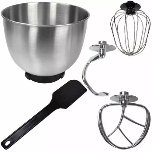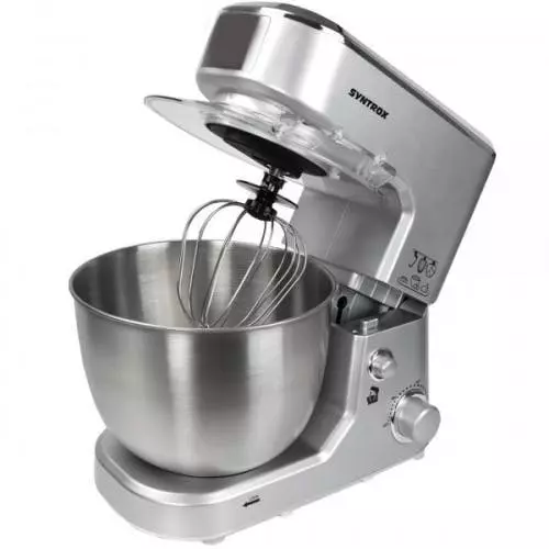 Küchenmaschine mit 5 Liter Edelstahl-Behälter in Silber – hochwertig und speziellLust auf eine praktische und moderne Küchenmaschine, die Ihnen viele Vorteile bringt und für ein Plus an Komfort in der Küche beiträgt? Dann sind Sie hier genau richtig. Sie bekommen hier eine große Vielfalt an Produkten für die Küche zu guten Konditionen. Die hier angebotene Syntrox Germany Küchenmaschine ist mit einem 5 Liter Edelstahl-Behälter ausgestattet und überrascht mit dem schicken, modernen Design und den vielen Extras. Mit der Syntrox Germany Küchenmaschine und Knetmaschine mit dem 5 Liter Edelstahl-Behälter erhalten Sie eine hochwertige und spezielle Maschine, mit der sich viele Arbeiten in der Küche wesentlich einfacher gestalten.Besonderheiten der Küchenmaschine Das Gerät ist mit 1.000 Watt leistungsstark und überzeugt mit einem guten Ergebnis. Verwenden Sie die Syntrox Küchenmaschine, um Brotteig, Kuchenteig oder Pizzateig vorzubereiten. Dank verschiedener Aufsätze ist mit der Küchenmaschine von Syntrox Germany jede Menge möglich. Zu den Aufsätzen der praktischen Küchenmaschine gehören: • Knethaken • Rührhaken • SchneebesenDie 5 Liter Rührschüssel aus Edelstahl besteht aus rostfreiem Material. Sie können also problemlos immer und immer wieder Kuchenteige und andere Teige in der Schüssel zubereiten. Fast wie von alleine wird aus den Zutaten Teig gemacht. Geben Sie einfach die entsprechenden Zutaten in Ihre Rührschüssel, verwenden Sie das passende Rührwerkzeug und stellen Sie noch die Geschwindigkeit nach Wunsch ein. Für ein Plus an Stabilität sorgen die rutschfesten Gummifüße der Küchenmaschine. Eiweiß können Sie übrigens auch sehr gut schlagen. Dafür verwenden Sie einfach den Schneebesen und bringen ihn in Aktion. Doch nicht nur die Funktionen überzeugen. Ebenfalls interessant ist das schicke und moderne Design des Gerätes. In jeder Küche integriert sich die Maschine optimal. Die Küchenmaschine lässt sich auch sehr einfach reinigen. Über die praktische Küchenmaschine in der Küche werden Sie sich bestimmt freuen und viele Teige vorbereiten. Eigenschaften: • Power: 1000 Watt • Kabellänge: 1,1 m • Gewicht: 4,5 kg • Geschwindigkeiten: 3 (Max, Middle, Small) • Rutschfeste Gummifüße für Stabilität • einfache Reinigung • Farbwahl: Silber
